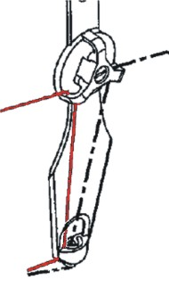Threading-up with Elastane plating: Thread the basic yarn in the fix yarn carrier bow and the Elastane yarn in the moving bow. | ||
