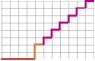 Cómo modificar las especificaciones de menguado. - Los escalonamientos en el menguado en sisa forman una curva en J definida por el usuario.