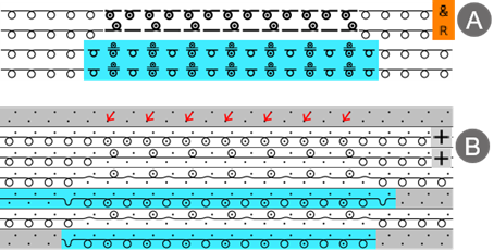 : The knitting element type contains technical rows additionally to the design rows, which are displayed in the design pattern.