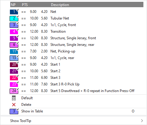 Opens the displayed entry of the stitch lengths table in the Pattern Parameters . There you can select further NP entries and make settings. |