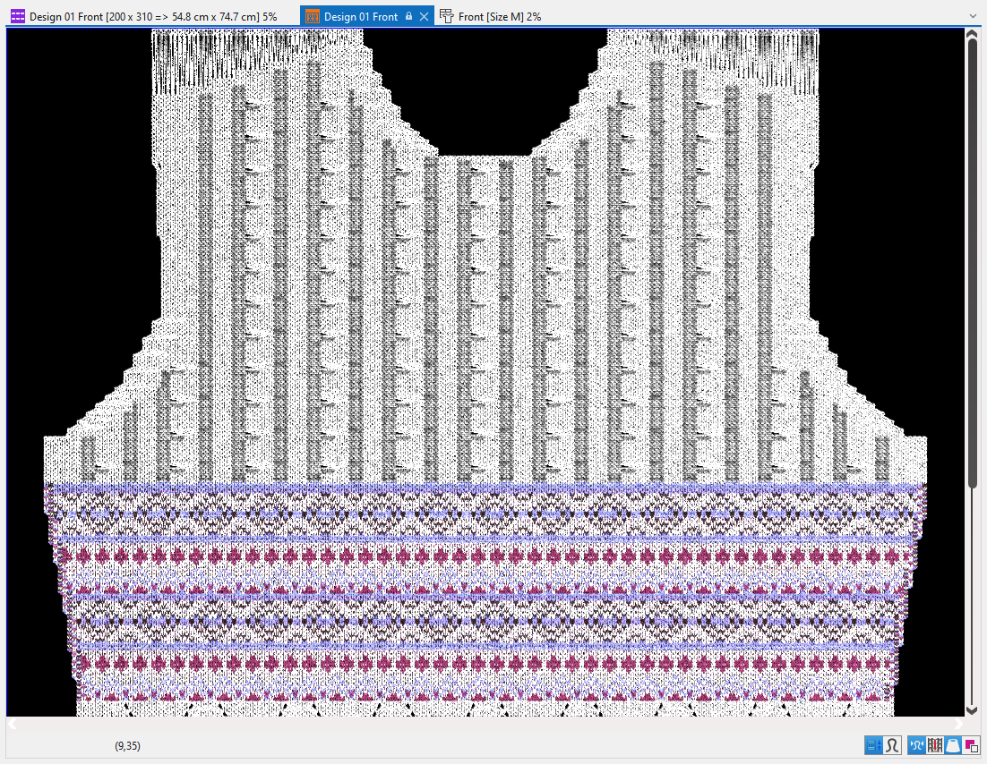 In the fabric view you see a realistic representation of stitches of the expanded pattern. You are able to modify and adjust this view. However, the pattern cannot be edited in this view.