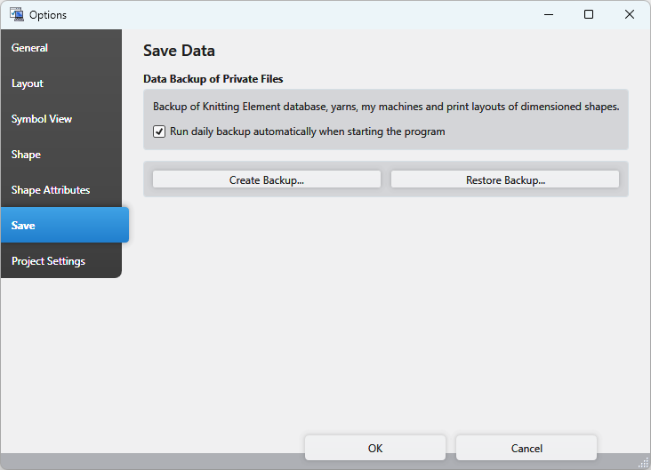 Activate this option to execute an automatic backup every day with the first program launch. |