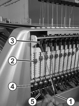 Adjust a middle braking effect at the YCU yarn brake (4). | |