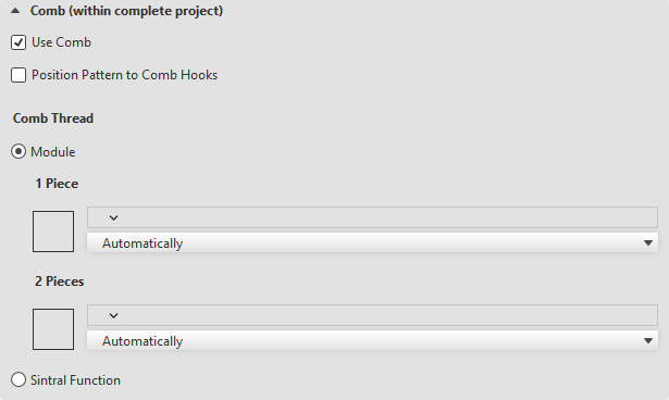 All patterns in the project are knitted with comb start. This setting applies to all patterns in the project. |