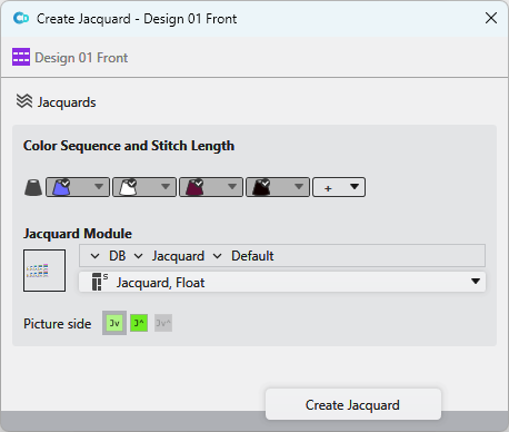 Make the desired settings in the dialog box and click on Crea Jacquard.