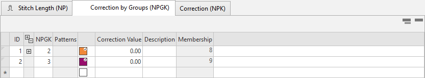 Correction by Groups (NPGK) Correzione di gruppo (NPGK) General settings in the upper pane: General settings (correction by groups) Settings in the table: Table entries (correction by groups) In the context menu on the entries: Context menu on the entries (correction by groups) Context menu in the header (01) Informazioni che proseguonoContext menu in the header (01)