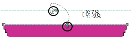Open the coordinate display in the shape element double-clicking LMB and enter values. - The anchor point becomes visible with its X and Y coordinates in the Yaka açıklığı shape element.