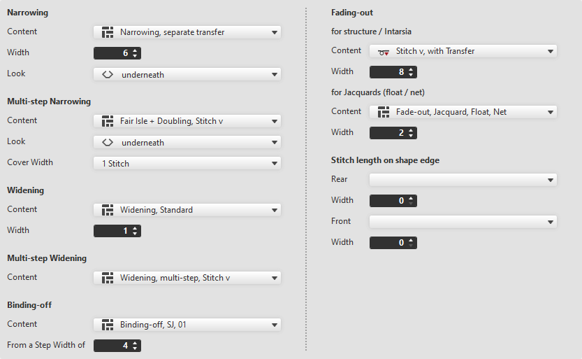The fading-out can be configured differently for Structure / Intarsia and Jacquard.