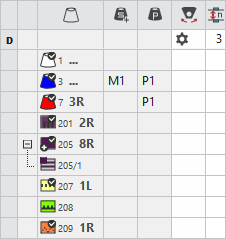 Display of all yarn colors and technique colors used in the order. The assigned yarn carrier appears beside the color. |