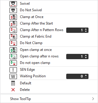 The yarn carriers will be positioned with an additional distance (number of needles) from the fabric selvedge. This waiting position will be kept until the reuse of the yarn carrier. |