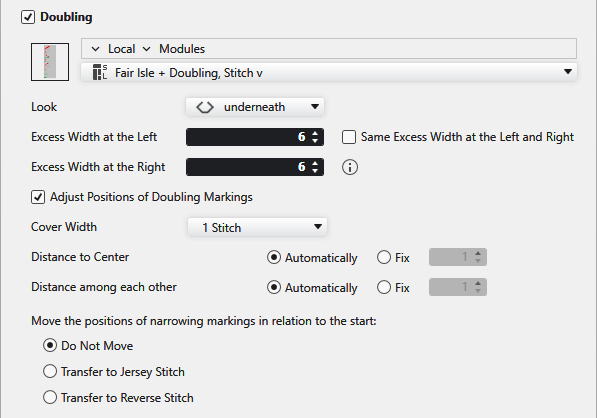 Places the narrowing markings only on the reverse jersey stitches of the start. |