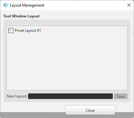 Your own saved layouts are displayed in the window layout. |