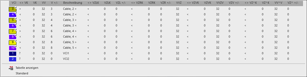 In the knitting elements, the structures for knitting on all needles are managed and also for 1x1 technique. This means, that there is entered a racking correction value for all racking courses in the knitting element. - The entries marked as favorites in the