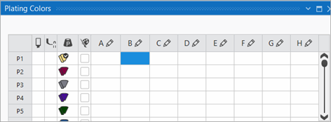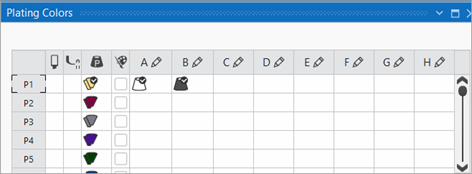 - Under P1 (Plating color 1) in the columns A to H allocate the desired colors for plating.
