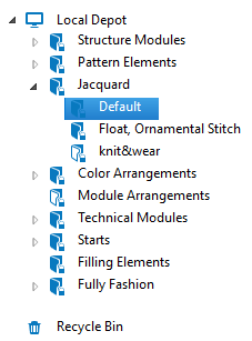 directory contains all the knitting elements of the Jacquard module type with their corresponding properties. - There are further subdirectories for a better structuring.