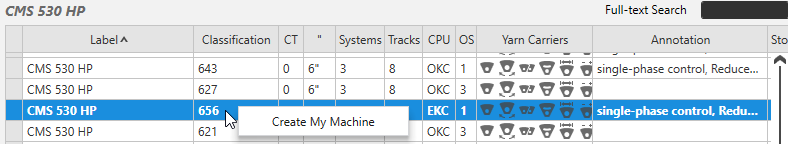 Selection of a STOLL standard machine -