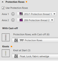 Use the knot module 浮线,锁定,织物边缘 for the knitting-in of the protection thread in the protection rows at the fabric end.