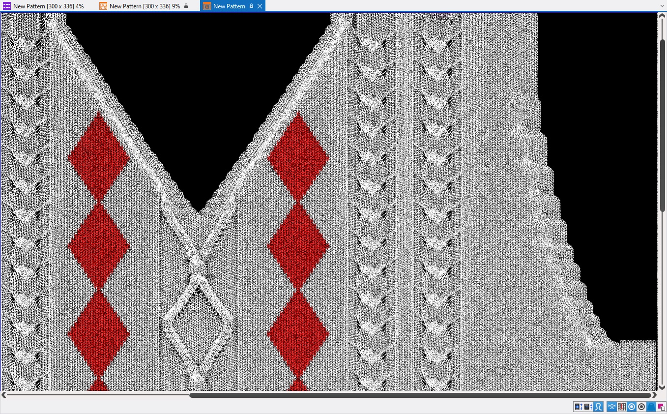 In the fabric view you see a realistic representation of stitches of the expanded pattern. You are able to modify and adjust this view. However, the pattern cannot be edited in this view.