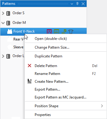 Run the following functions in the context menu of the pattern name: