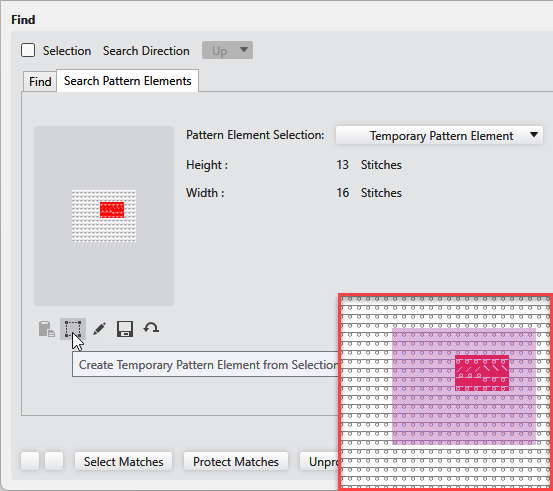 查找和替换 window. - Select the area in the pattern that you want to insert as a temporary pattern element in the search criteria.