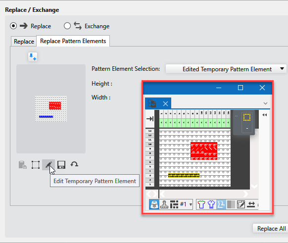Search for, edit and replace a temporary pattern element in the entire pattern.