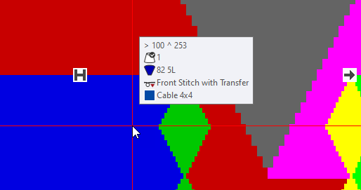 In the tool tip on a knitting-out symbol you can see the following information: