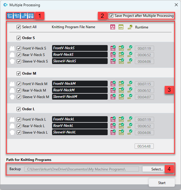 - If an error occurs in a processing step, the processing of this pattern will be aborted with an error message. The multiple processing continues for all the other patterns.