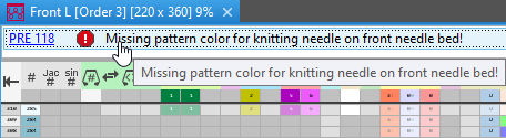 Click on the error message in order to get more information about the error cause, its position in the pattern and a possible remedy.