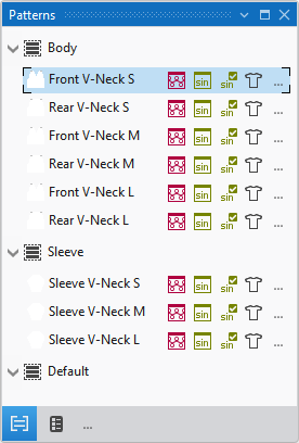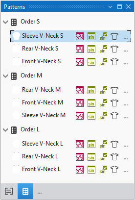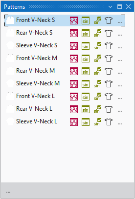 Beside the pattern name appear different icons.