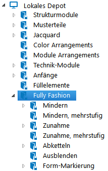 befinden sich alle Strickelemente für Fully Fashion mit den entsprechenden Eigenschaften. - Zur besseren Strukturierung sind weitere Unterverzeichnisse angelegt.