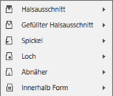 - Im Auswahlmenü gewünschtes Schnittelement symmetrisch / asymmetrisch auswählen.