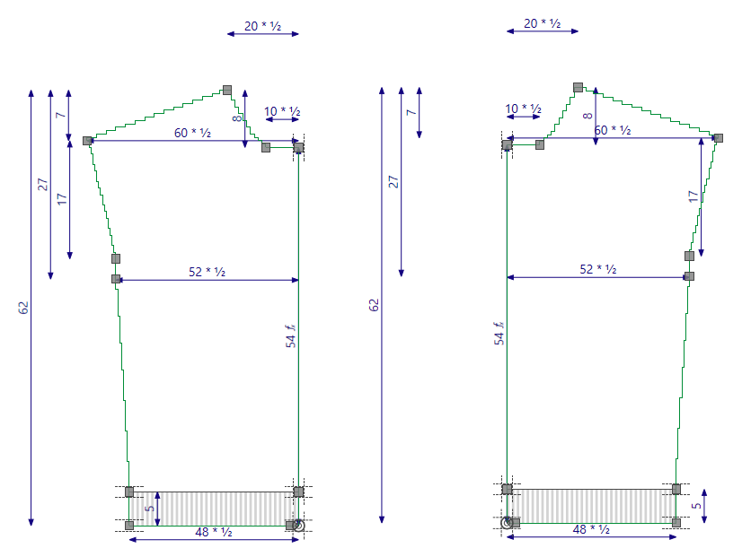 - Vom Strickteil sind zwei getrennte Strickteile für links und rechts erstellt.