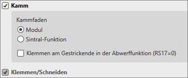 - In der Rubrik Kamm gewünschte Einstellungen vornehmen: