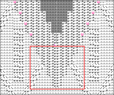 Anzeige des Zeichenbereichs für Stricken auf allen Nadeln. | ||