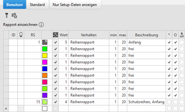 - Freien Rapportschalter Farbe+(?) direkt im Kontextmenü auswählen und in Steuerspalte einzeichnen