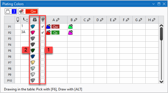 Plattierfarbe (2) wird aus den ausgewählten Farben automatisch gemischt. -