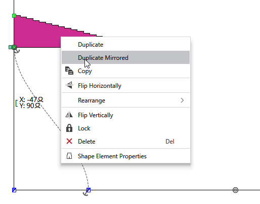 - Das gespiegelte Schnittelement wird neben dem ursprünglichen Schnittelement eingefügt.