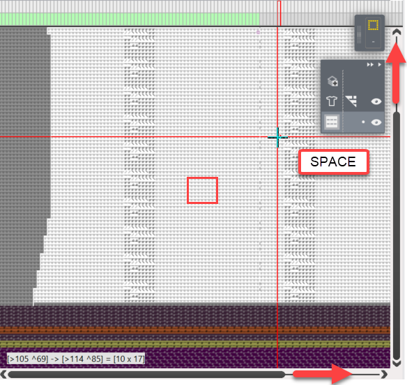 Ist ein Bereich im Muster selektiert wird dieser im Dokumentfenster zentriert angezeigt.
