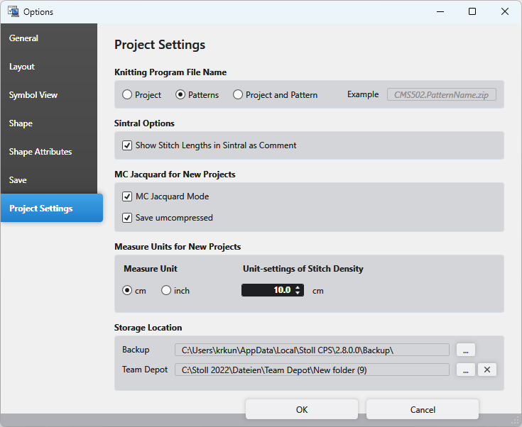 Den Pfad für einen Ordner im Netzwerk oder der Cloud, zur Speicherung der Strickelemente auswählen.