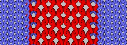 Diese Stricktechnik basiert auf der Stricktechnik Intarsia, da in einer Strickreihe die nebeneinanderliegenden Bereiche (grob – fein) mit verschiedenen Fadenführern gestrickt werden.