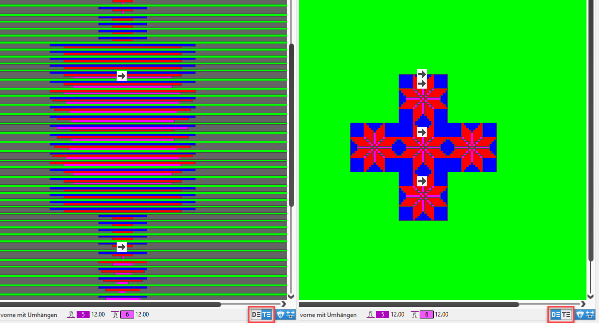 - Die Jacquard-Symbole erscheinen in den Dokumentfenstern jeweils unterhalb der Statusleiste.