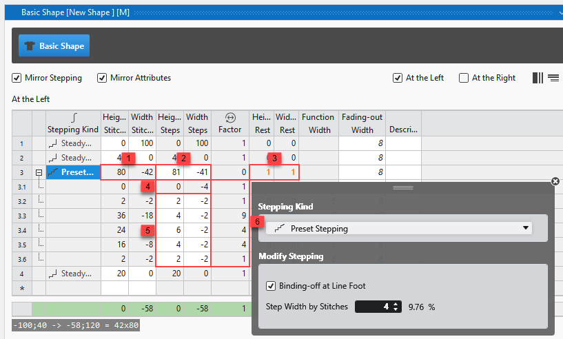 6 | Faktor der Stufung Der Faktor für jede Stufe wird so errechnet, dass die gewünschte Gesamt-Höhe und -Breite der Linie so präzise wie möglich erreicht wird. |