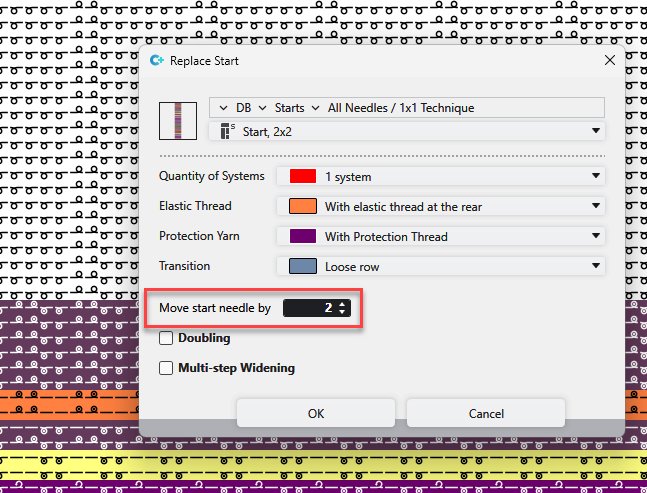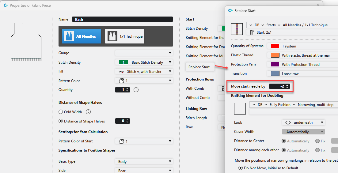 Strickteil-Eigenschaften / Dialog Anfänge ersetzen