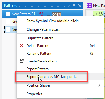 Ist dies nicht der Fall, dann erscheint bei der Technikbearbeitung oder beim Expandieren eine Fehlermeldung. - Ein Muster als MC-Jacquard exportieren.