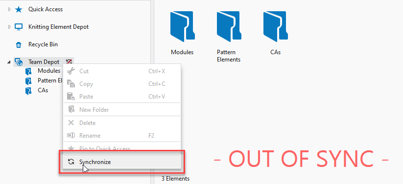 - Über das Kontextmenü auf dem Ordner kann das Team Depot synchronisiert werden.
