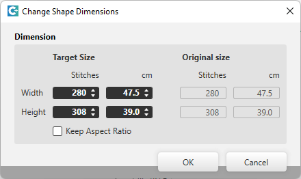 - Mit Änderung der Dimension werden alle Schnittelemente im selben Verhältnis angepasst.