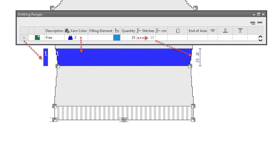 - Der Strickbereich überschreibt das Grundmuster in diesem Bereich.