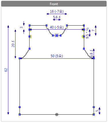 Editierfeld für ein einzelnes Strickteil (hier Vorderteil)
