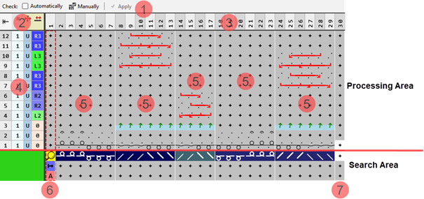 Designation of the rows and columns in the Module Arrangement Editor (MA)