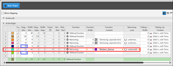 - Allocate the generated narrowing module to shape lines no. 6 of the left and right shape part.